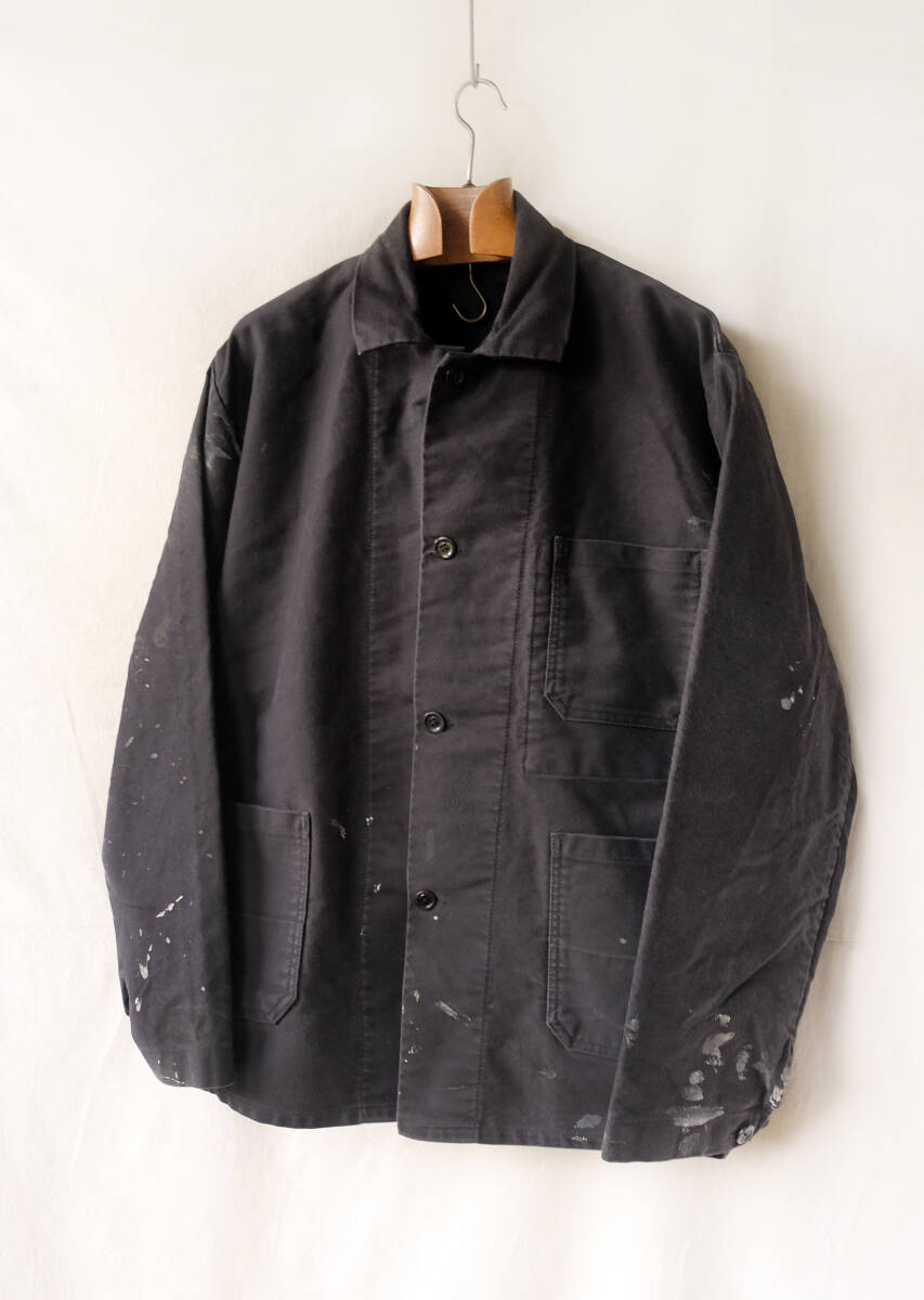 - 1960's フランス ヴィンテージ ブラックモールスキンワークジャケット 黒ガラスボタン 60s