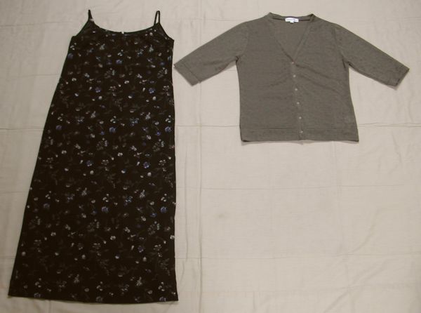 - ■美品:袖なし花柄ワンピース&薄手八分袖カーディガン M位 DmH04