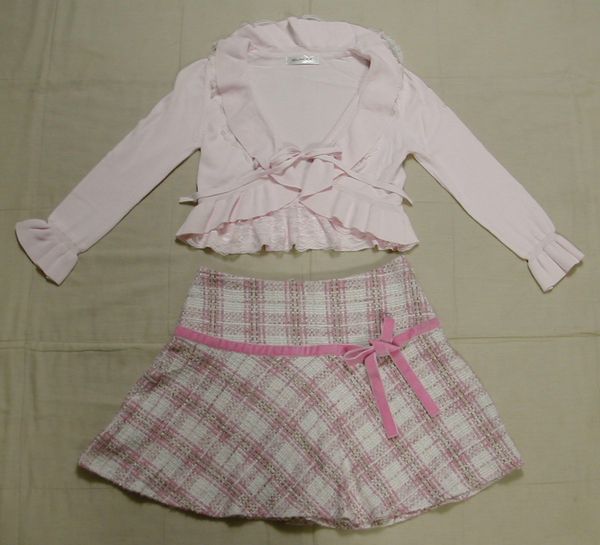 - ■美品:可愛いピンク系 レース付カーディガン&スカート M DmL23