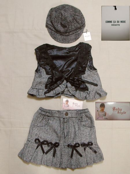- ■タグ付新品:100cm ヘリンボーン柄ベストスーツと帽子 DmM77