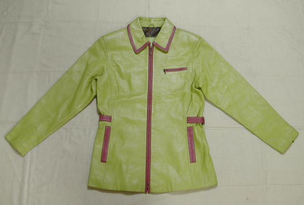 - ■美品:革ジャンパー 鮮やかな緑にエンジのライン L DmR80