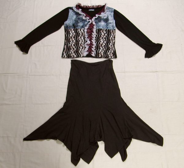 - ■美品:レース&刺繍でカラフルなトップスと茶系スカート M DmU74