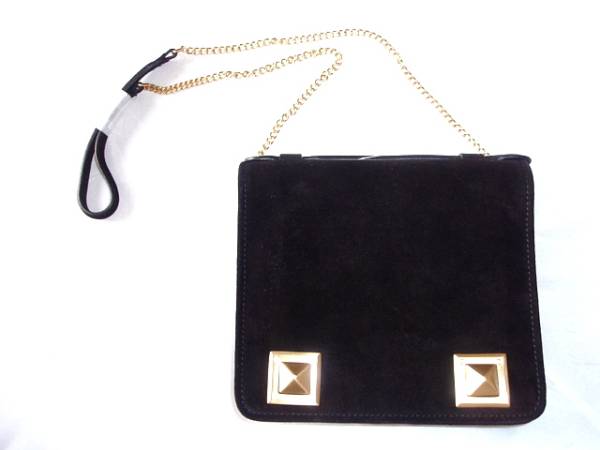 > ● ソニアリキエル ショルダーバッグ 新品 RABAT ヌバック レザー 革 黒 ブラック SONIA RYKIEL ゴールド チェーン ミラー 鏡 たくさん収納