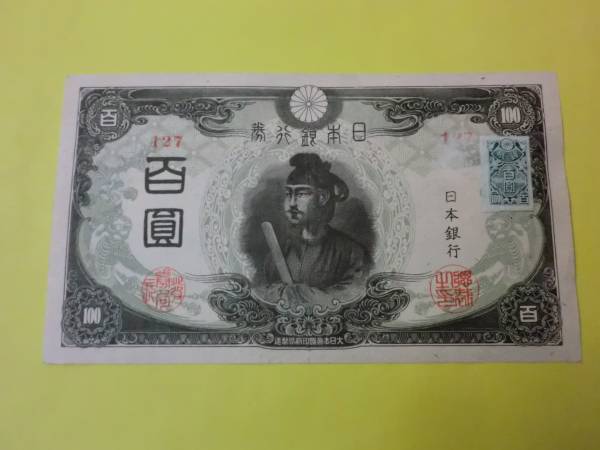 - ★ 改正不換紙幣100円 3次100円 証紙付 極美品 ★ No.501