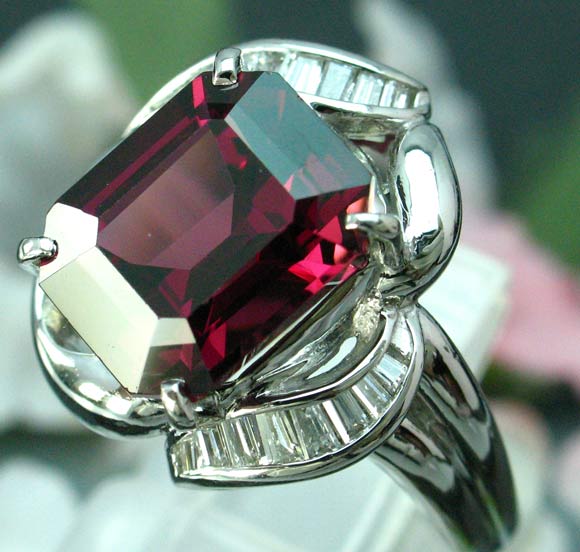 - 大粒ロードライト プラチナリング 13.5号 pt900★10.9g★ガーネット5.661ct ダイヤモンド0.31ct★3380coy