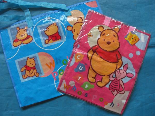 - 未使用 くまのプーさん 手提げカバン ブルー&ピンク②