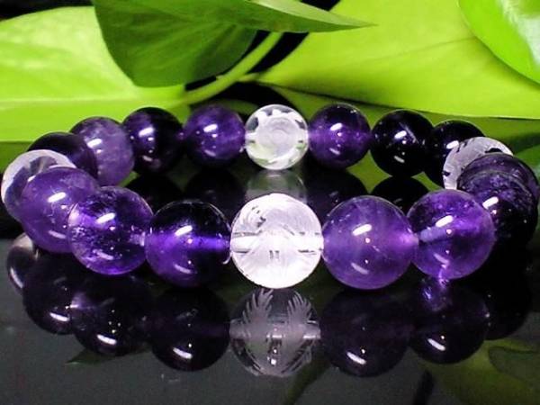 - 素彫四神獣水晶・天然アメジスト紫水晶10ミリ
