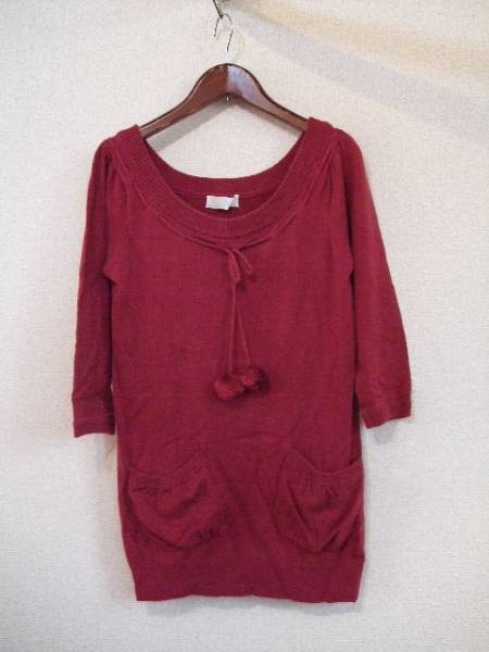 - laBalaピンクポンポンリボン付長袖ニット(USED)90213②)