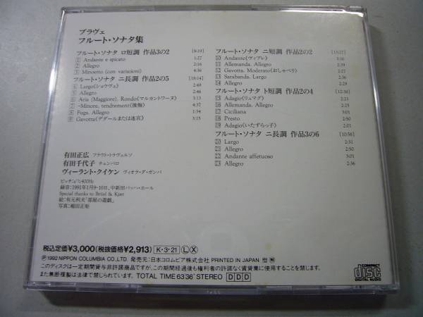 - 【仏18世紀】有田正広/クイケン ブラヴェ:フルートソナタ集【国内盤】