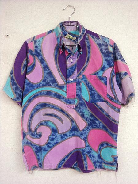 > ビンテージUi-MaikaiサイケB/DボタンダウンP/Oプルオーバー アロハシャツOLDハワイアンalohawaiiオールドUSED古着