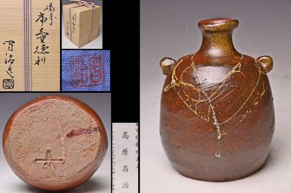 - 高原昌治 ★ 扁壺徳利 ★ 共箱共布栞 ★ 糸胡麻 ★ 検 伊勢崎陽山 石井不老