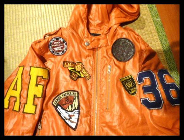 - ワッペン フルデコ 中綿 ジャケット オレンジ色 Mサイズ ジャンパー