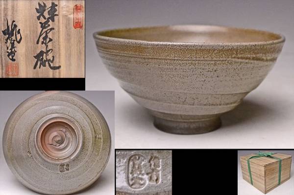 > 黄蕨堂 ★ 桃渓堂 ? 作 ★ 青備前茶碗 ★ 共箱 ★ 茶道具 ★ 検 明治時代 古備前 希少