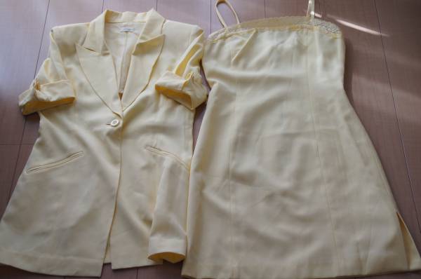 - ④USED★レース付キャミワンピスーツ★きれいなレモン色9号