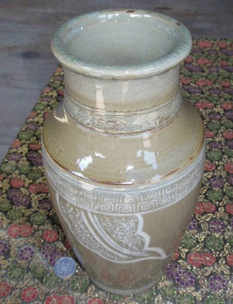 - 高田焼 青磁象嵌 花入 棚飾り 陶磁器研究