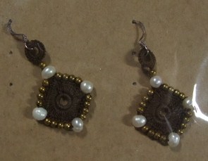 - 【 ピアス 】 淡水パール ピアス 真鍮 タイ カギ針編み レース編み エキゾチック 個性的 ひし形 揺れる 可愛い 優しい