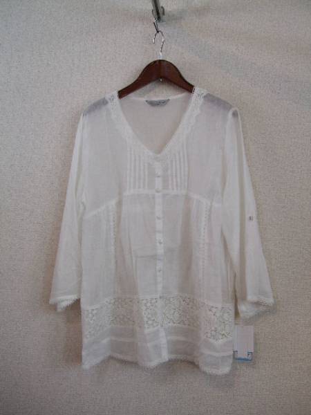 - しまむら白レース付7分袖ブラウス(USED)21014)