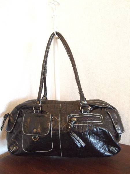 - 黒シワ加工合皮ボストンバッグ(USED)50814)