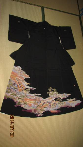 - 2000円値引き(旧家・蔵出し)(作家物・手描き友禅橋に時代行列模様留袖)