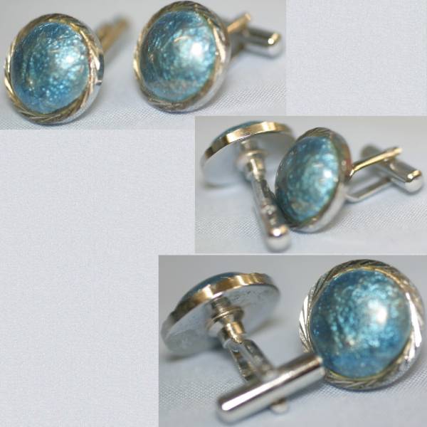 - 直径1,5㎝付きのクレ-タ-の様な濃紺系石付銀色カフスボタン ○D7-179-4