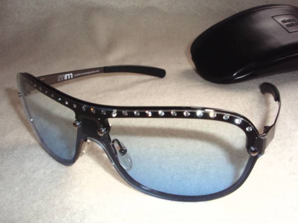 > ● alain mikli アランミクリ スタッズ サングラス 眼鏡 新品 ラインストーン レンズ ブルー フレーム ブラック 黒