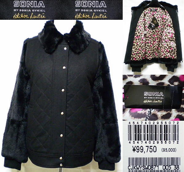 - 新品★定価9.5万+税★ソニアリキエル★3way★レッキスファージャケット&中綿入りベスト★ジレ★38★ヒョウ柄★2点セット★黒