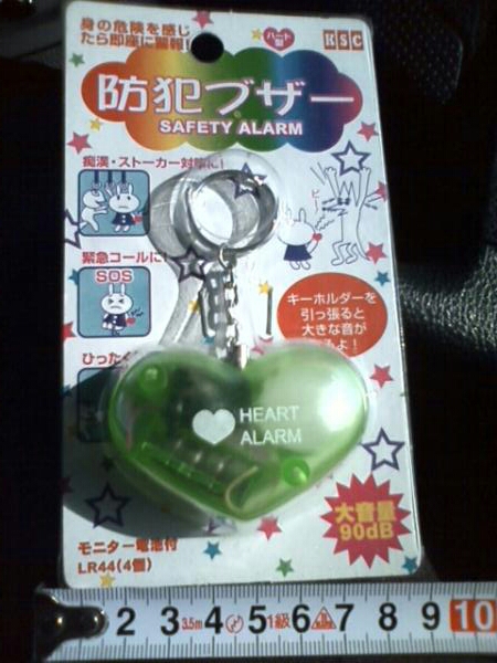 - 超素敵☆メーカー廃盤品☆電池付き☆防犯ブザー☆アラーム☆ハート☆グリーン☆残1