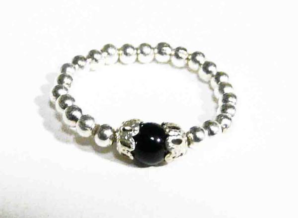 - 10月誕生石シルバー指輪/黒トルマリン/フリーサイズ男女兼用