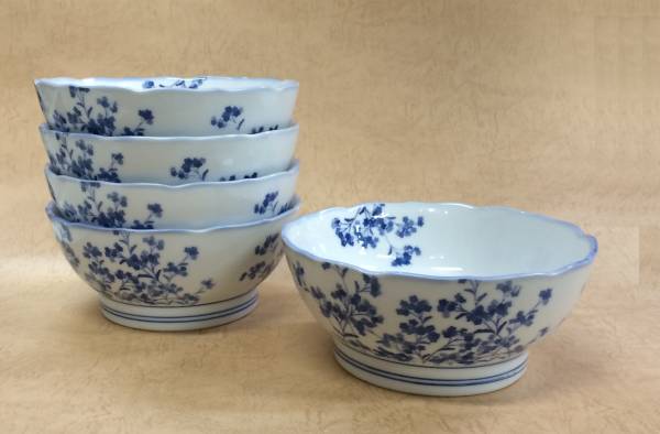 - 5個セット 6組30個有【即決】定番柄 秋草染付 磁器 刺身鉢 15.8cm