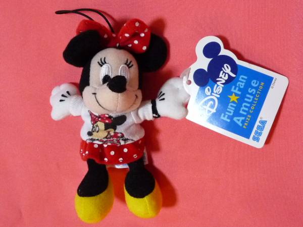 - 激レア!カワイイ♪ ディズニー Tシャツ着た ミニーマウス ゴムひも付 ぬいぐるみ (非売品)