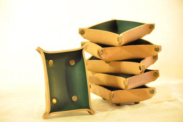 - 1点 レザートレー牛革トレイショップカード名刺入れ箱グリーン