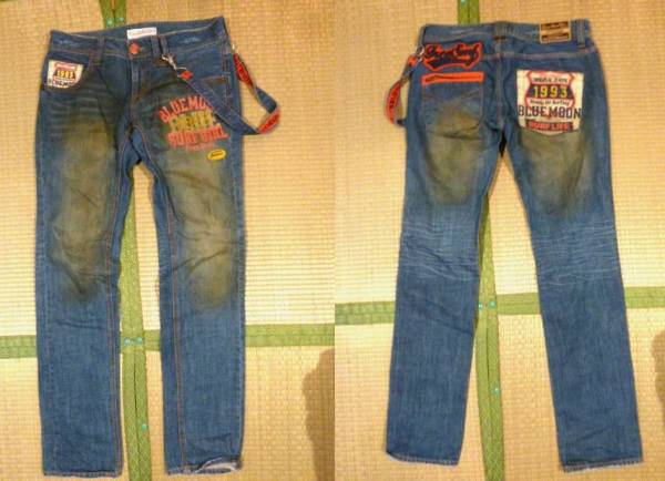 > SURF ワッペン BLUE MOON BLUE デニム ジーンズ 28サイズ デカロゴ ペイント パンツ