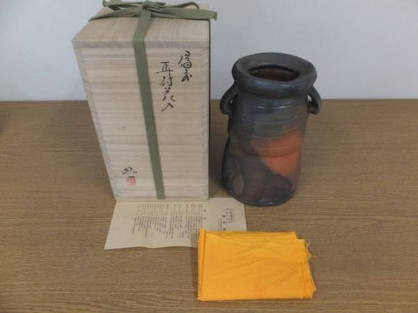 - 【真作保証】 柴岡紘一 耳付花入 備前焼 (伊勢崎淳) 岡山県 ②