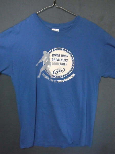 - ① USA古着 サイズM 前胸野球ロゴプリント 青色半袖Tシャツ