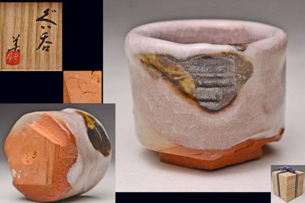 - 肥沼美智雄 ★ 柚子釉タイプ面取ぐい呑 ★ 共箱 ★ 検 オブジェ 陶象嵌 ★