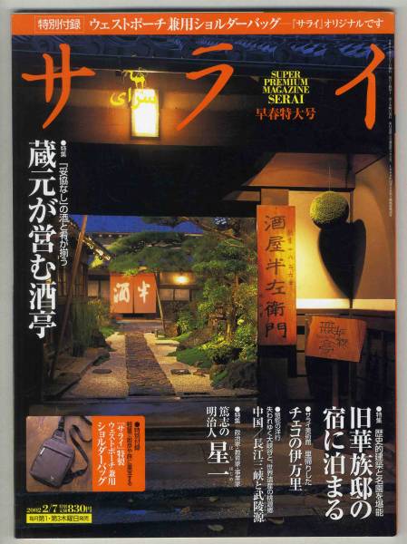 書名/記事: 02.2.7 サライ/蔵元が営む酒亭、旧華族邸の宿に泊まる、里帰りしたチェコの伊万里、中国・長江三峡と武陵源、今宵のお撮み-白菜月冠海鮮盛、実業家/政治家/教育家 星一、もうひとつの旬-青のり、...
