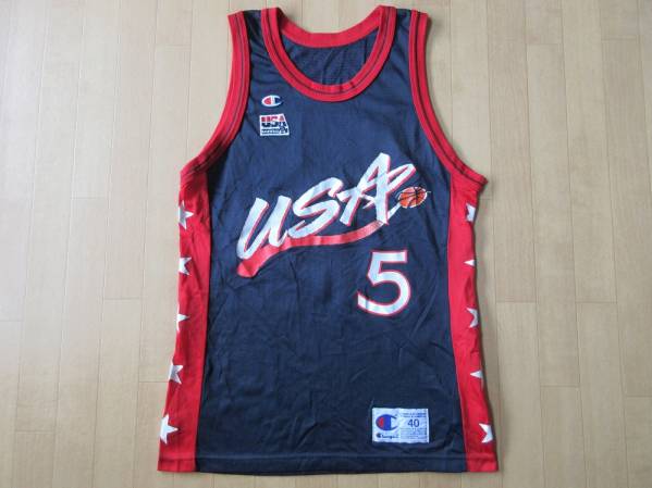 > 90's USA製 ドリームチーム チャンピオン グラント ヒル #5 ユニフォーム 40 アトランタ オリンピック champion Grant HillタンクトップNBA