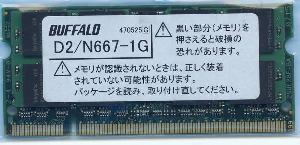 > BUFFALO D2/N667-1G×2 PC5300 PC2-200Pin 1GB 2本組 即決 相性保証