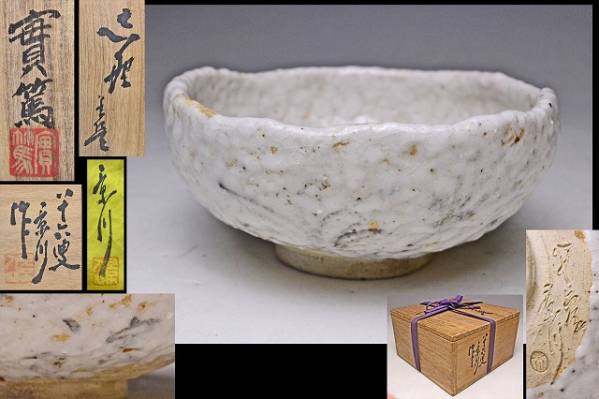 - 矢野景川 ★ 武者小路実篤 絵付 ★ 絵志野茶碗 ★ 共箱共布 ★ 茶道具 ★
