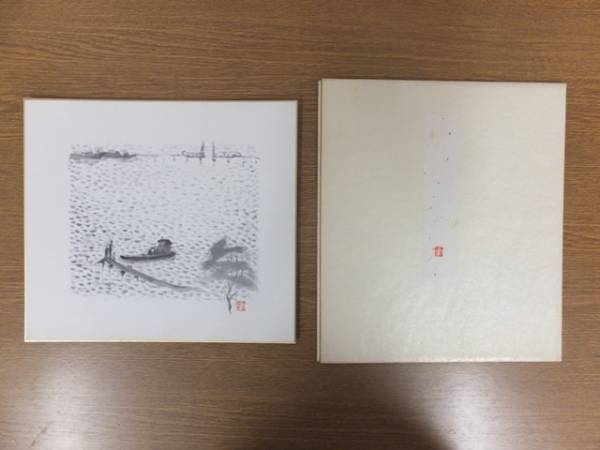 - 【真作保証】 津留崎晴男 洋画家 創元会審査員 福岡県 筑後川 色紙作品何点でも同梱可