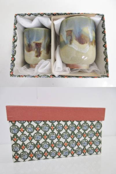 - 未使用品■香春焼 窯元山岡徹山 夫婦湯呑 箱入り 管理1601 A-1