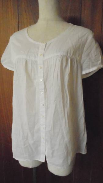 - Le Glazik ルグラジック 丸首半袖シャツ ブラウス ホワイト
