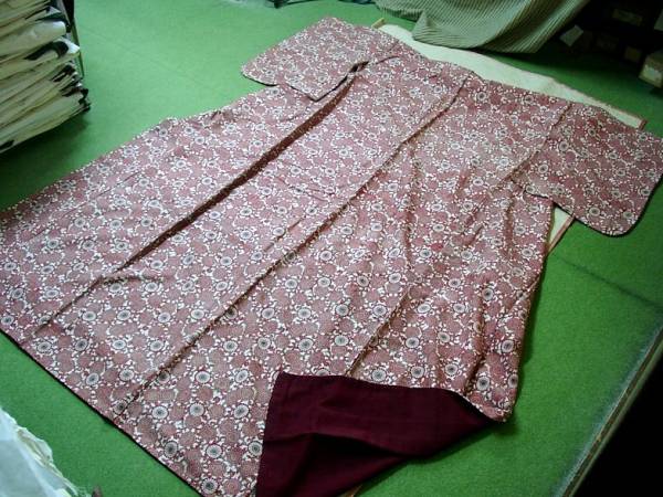 - ddd◆▼♪★留★正絹・紬・着物【唐花図】身丈153cm