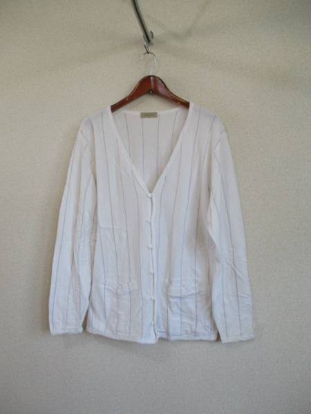 - zapatear白×グレーストライプ長袖カーディガン(USED)51416②)