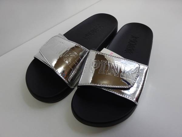 > ヴィクトリアシークレット ピンク VICTORIA'S SECRET PINK サンダル シルバー シャワーサンダル M レディース 日本未発売 新品