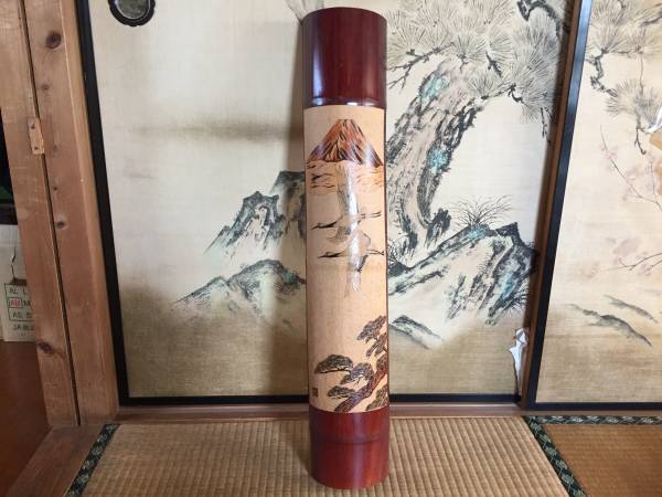 - ビック竹に彫物 鶴.赤富士.松など 作家物 同梱包可能