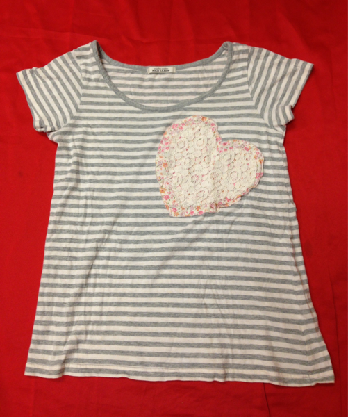 - NICE CLAUP ハート型レース使い ボーダーTシャツ ボートネック