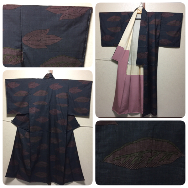 - 新品御仕立品★最高級 本場純泥染 大島紬【木葉模様】754番