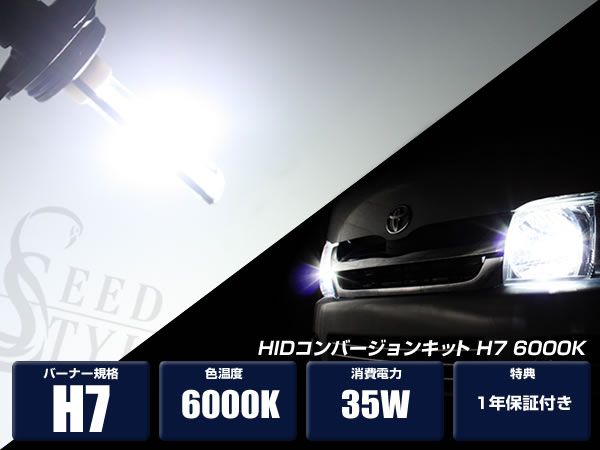 - H7 6000K バーナー 超薄型・軽量バラスト HIDキット 1年保証付き