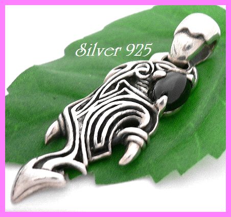 - シルバー925銀の天然石ブラックスター付ビーストナイフ ペンダント